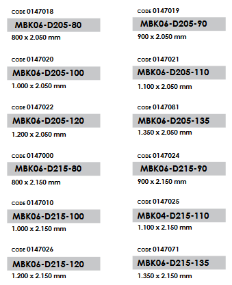 Βάρος Περίπου 35Kg/m² για Πόρτες 60’ και 45Kg/m² για Πόρτες 120’